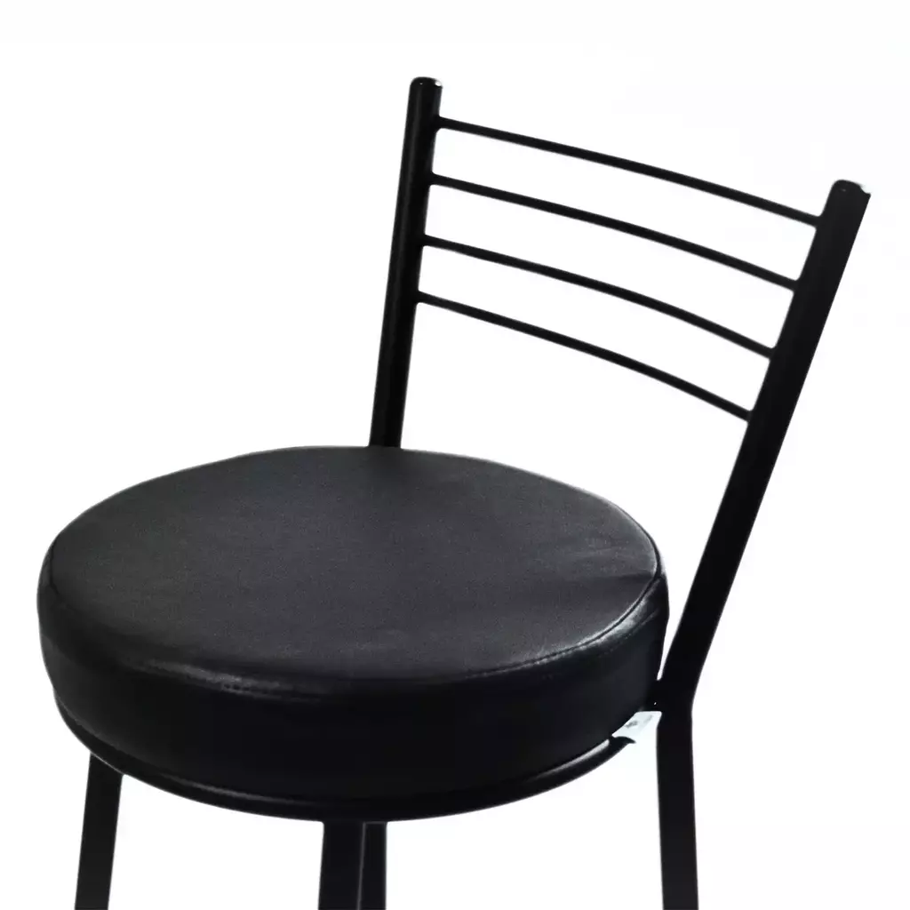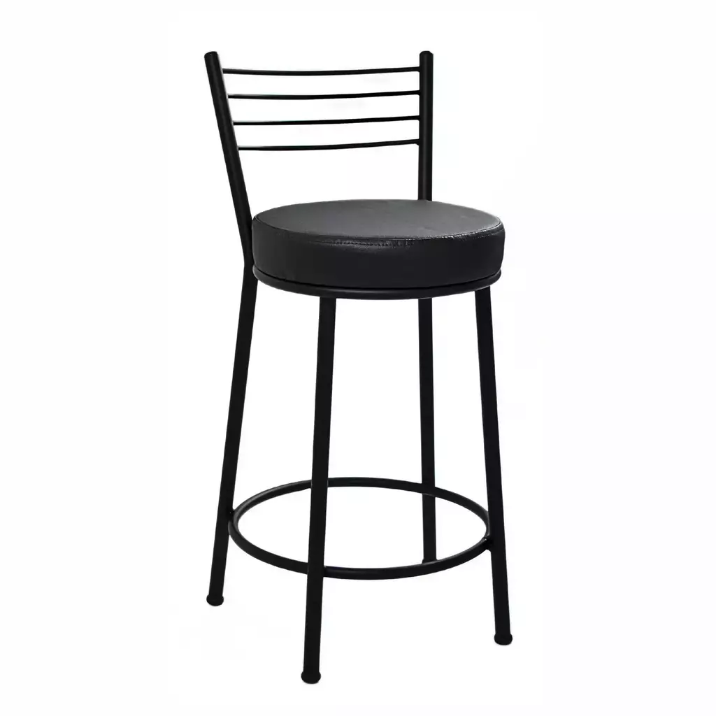 O Banco Metalnew Roma alia robustez e elegância no acabamento preto fosco. Seu assento estofado em courino preto, a 60cm do chão, garante altura ideal para bancadas altas e ilhas. O encosto composto por quatro tubos horizontais oferece suporte leve e moderno, enquanto o aro metálico como descanso de pés aumenta o conforto. Perfeito para residências e espaços comerciais que buscam um toque industrial sem abrir mão da praticidade.