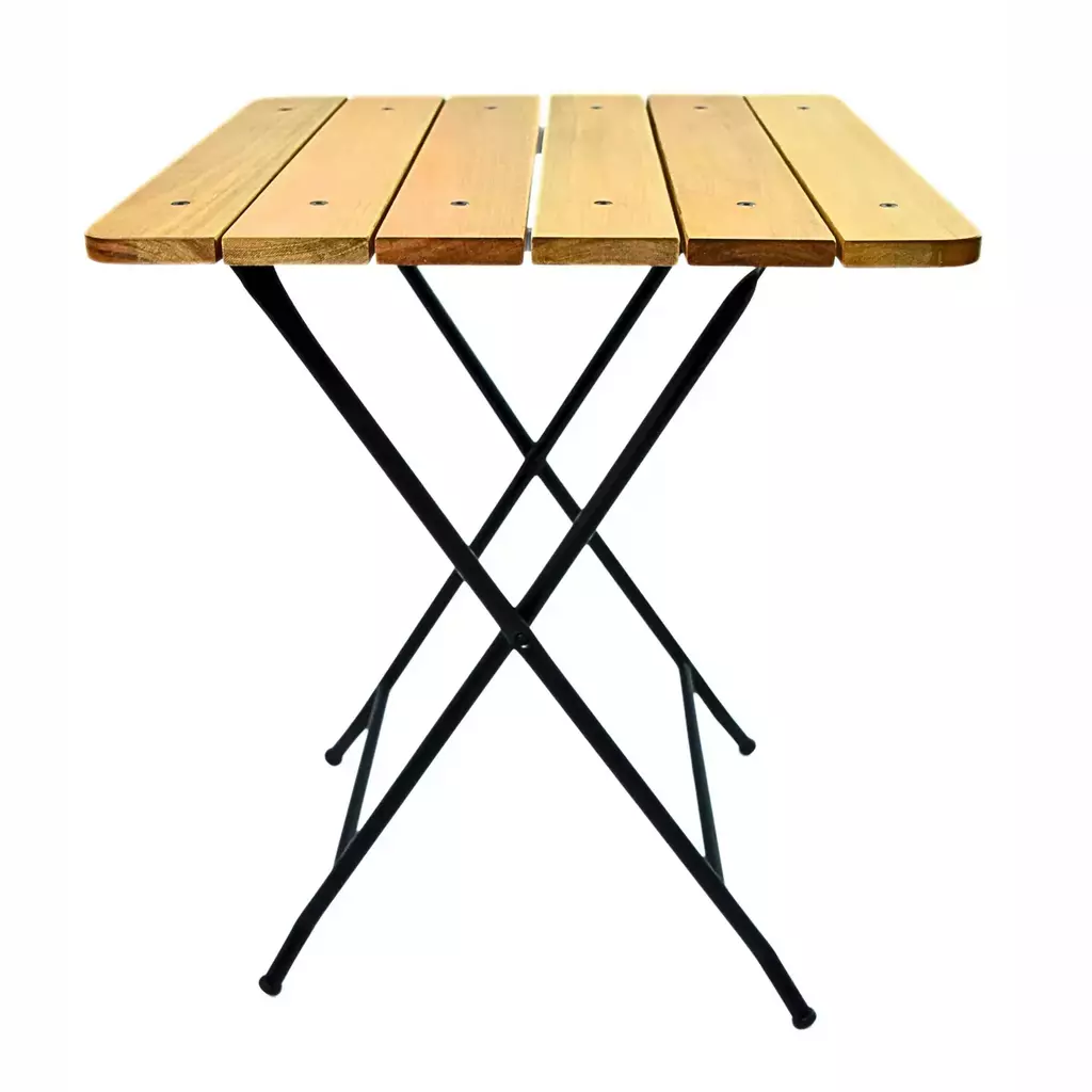 A Mesa dobrável Amazonas é a solução ideal para quem busca unir funcionalidade e design com personalidade. Seu tampo ripado de madeira de eucalipto natural mede 60×60cm, oferecendo um visual rústico e elegante que valoriza qualquer ambiente. A estrutura em metal preto fosco, feita em tubo 3/4” com pintura eletrostática a pó, garante resistência e durabilidade, além de proporcionar estabilidade para o uso diário.